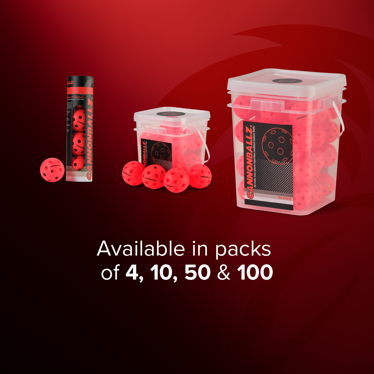 • Mint Cannonballz™ 26 Hole Indoor Pickleballs 4-Pack (Fluorescent Ember)