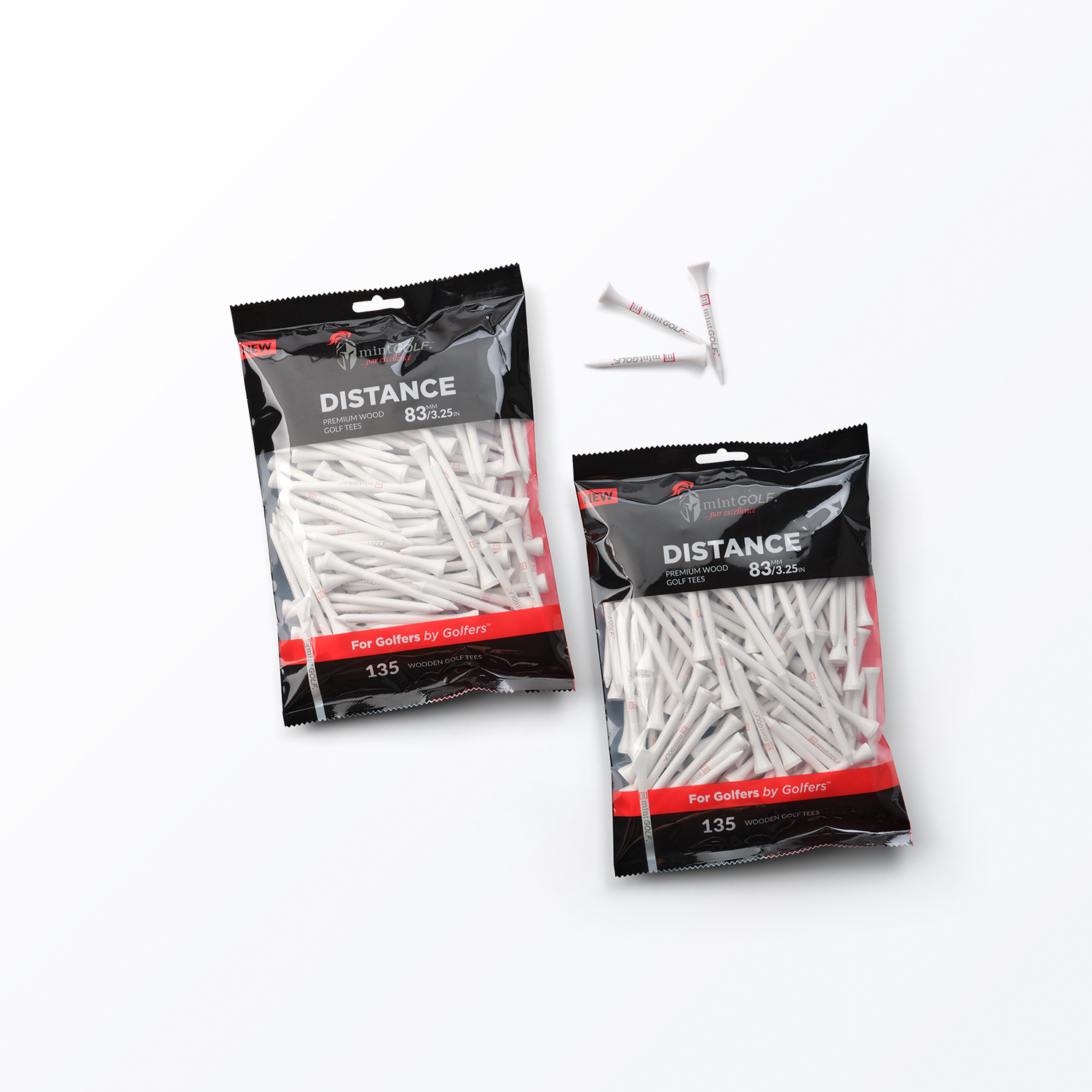 The mintGOLF Distance White Premium Wooden Tees are precision crafted for stable high ball mounts and minimized resistance off the tee, allowing for longer drives and confident strokes. Masterfully milled for consistent performance, these tees are designed to provide optimal height and stable ball mounts, ensuring you hit from your heart every time.