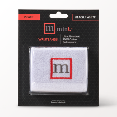 Mint wrist sweat bands are available in dual packs, offering one white and one black band to complement your style preferences.