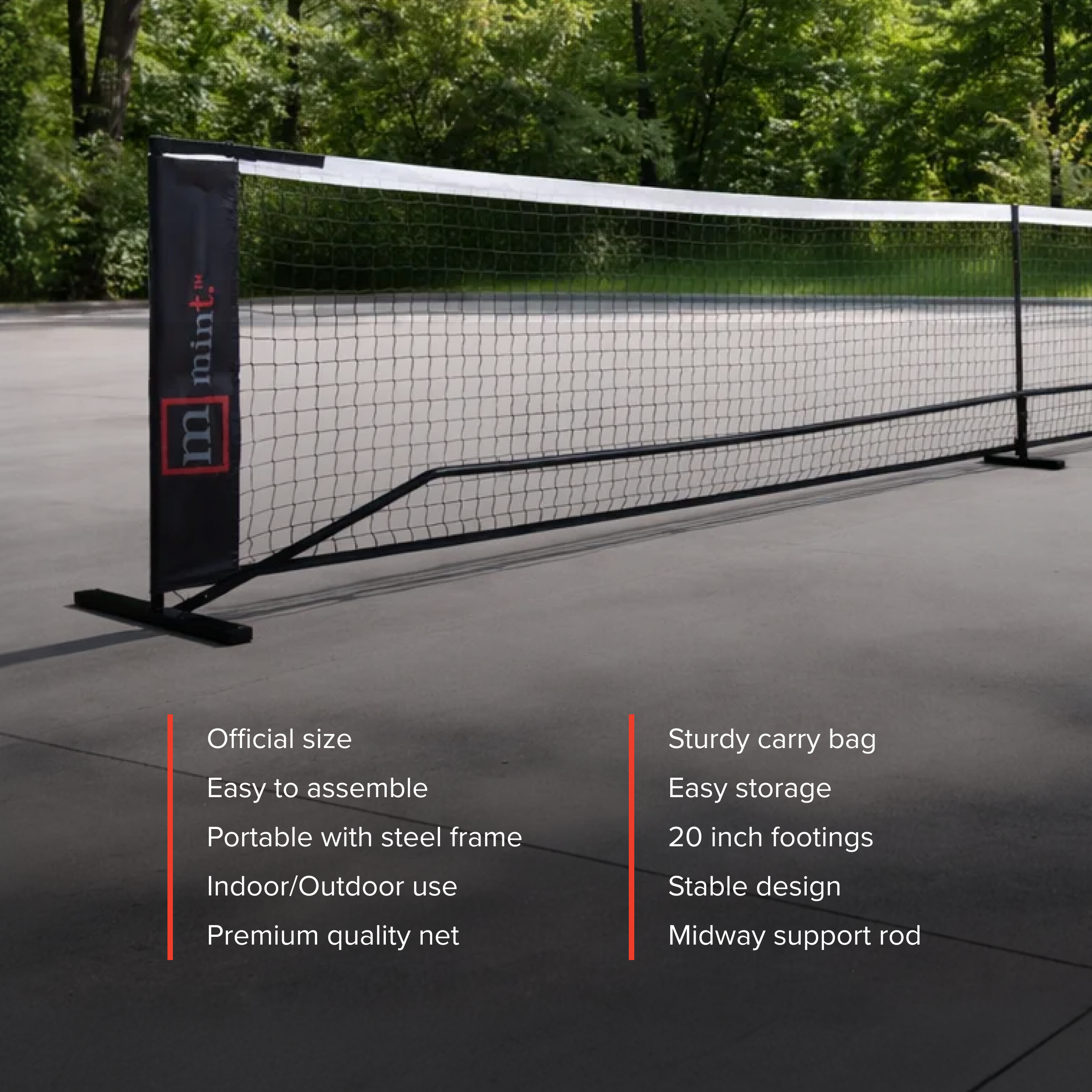 • Play Anywhere, Anytime: Whether it’s your driveway, gym, court, or backyard, the Mint Pro Black Pickleball Net brings regulation-size play to any spacious setting. Enjoy competitive matches or casual fun with friends and family, indoors or outdoors!