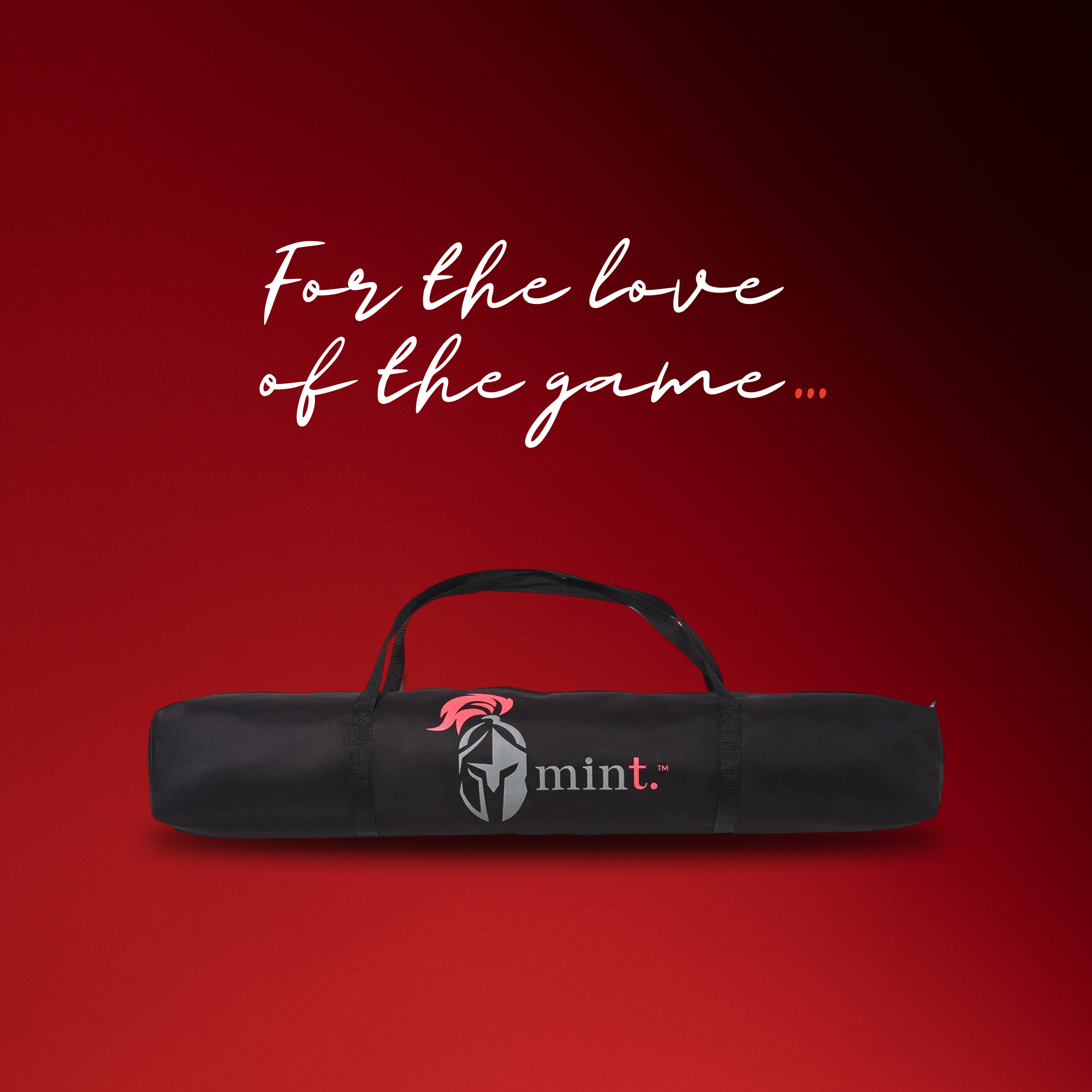 Mint brand logo with text 'For the love of the game' and a container of balls on a black background