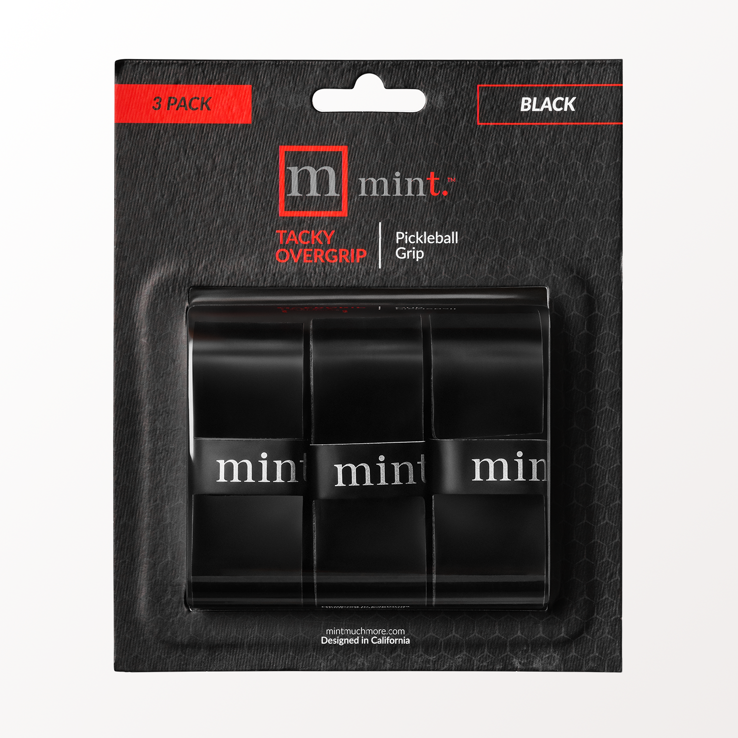 Home / Shop / Premium Pickleball Accessories / Mint Tacky Overgrip — 3-Piece (Black)