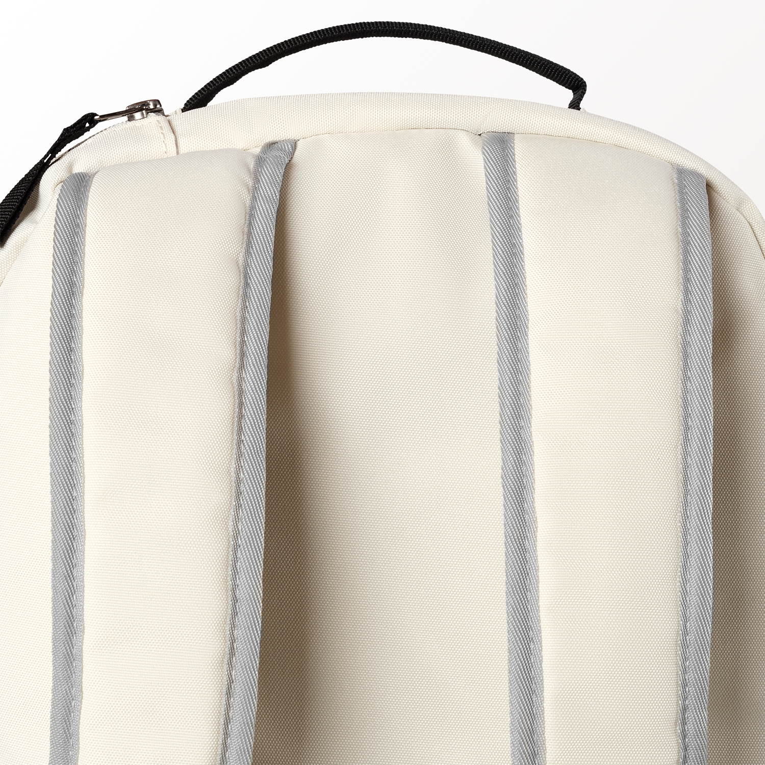 Close-up of a beige backpack with gray straps on a white background