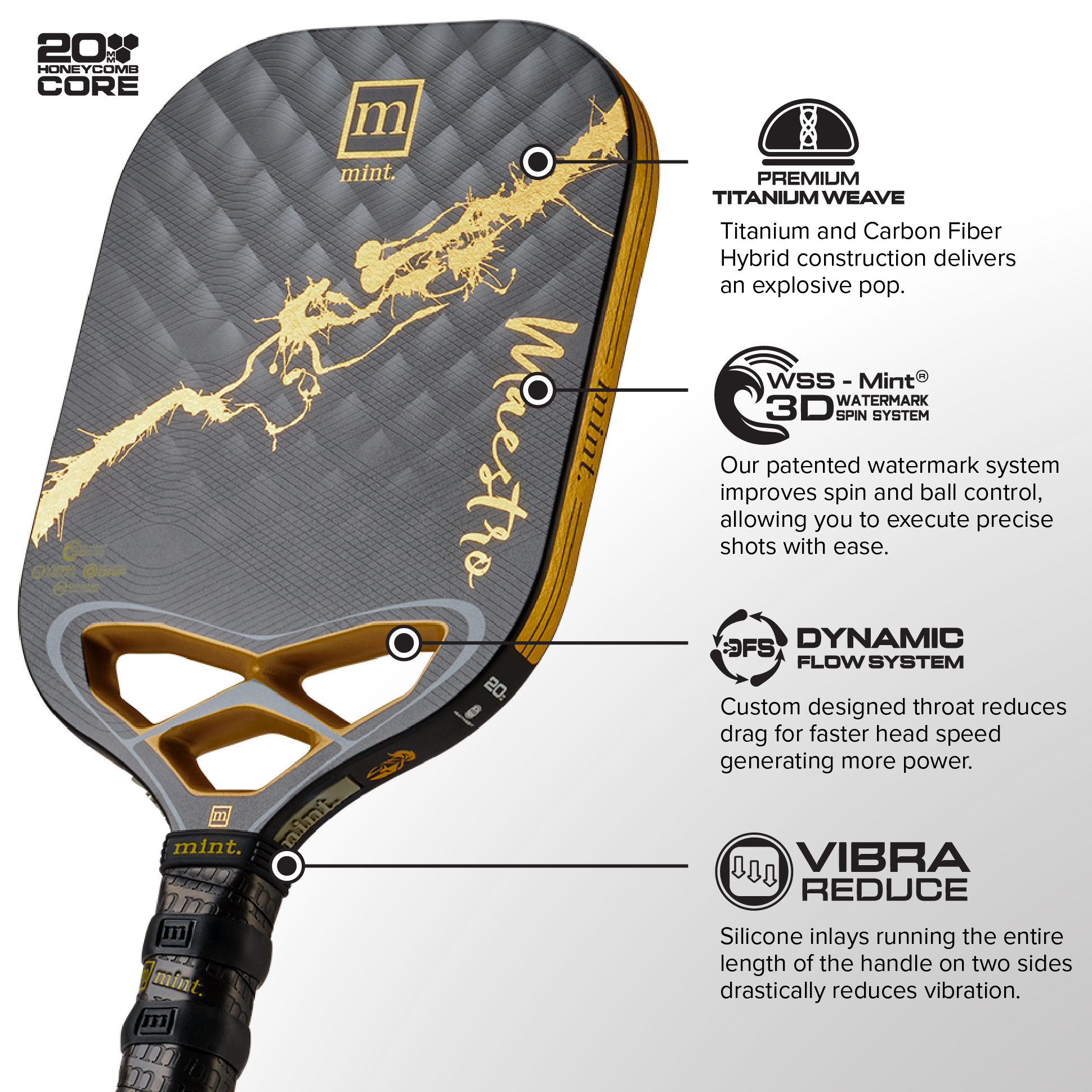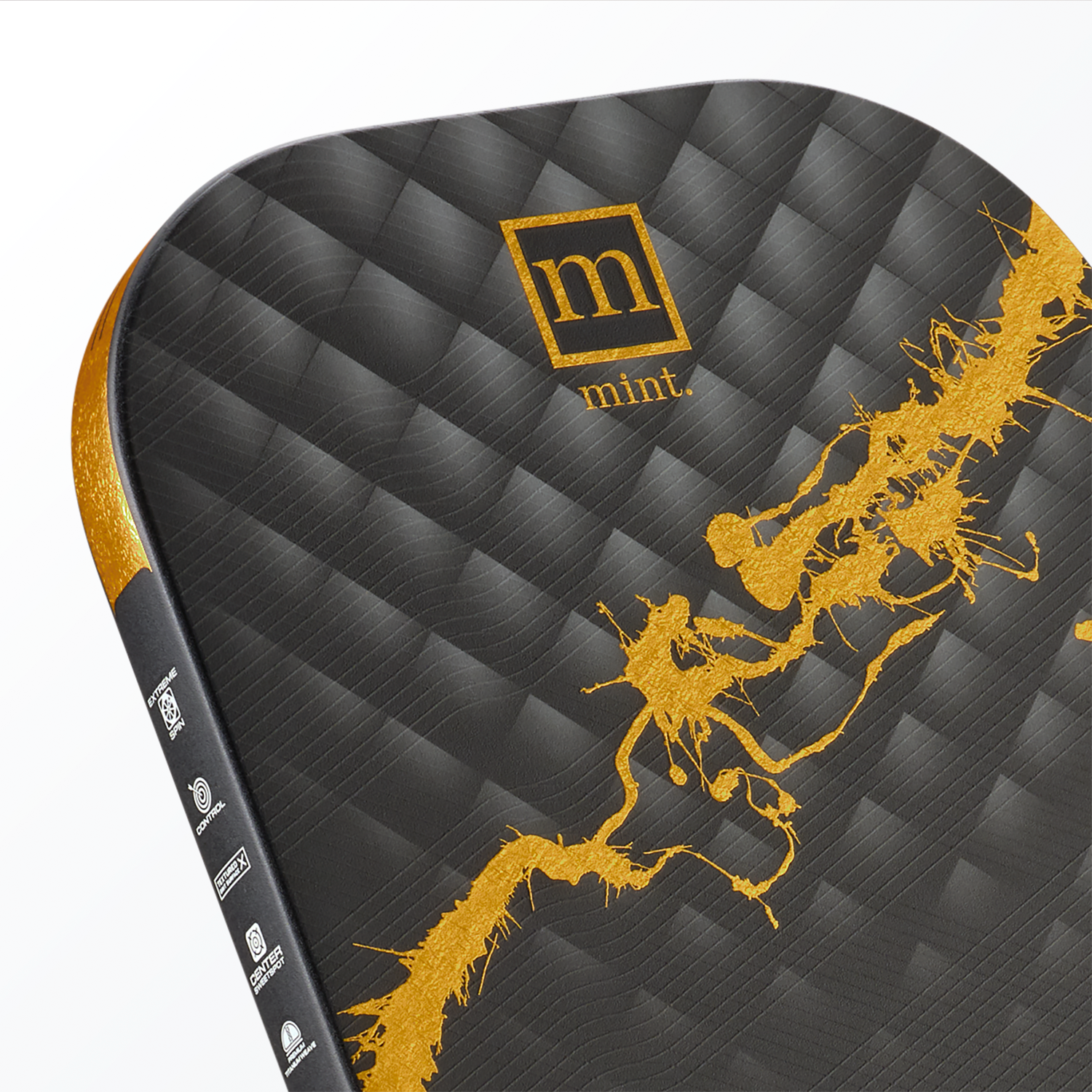 Our Patented MINT 3D WATERMARK SPIN SYSTEM™ improves spin and ball control, allowing you to execute precise shots with ease. - Face Composition
