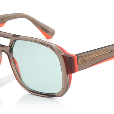 The Model 13 brings a confident, sporty feel with a refined edge. The warm brown Jinliang acetate frame is lifted with subtle orange accents, giving it energy without shouting. It’s a shape that feels at home on the move—easygoing, but intentional. The integrated acetate nosepad keeps the fit clean and comfortable, while the custom gold hinge adds a quiet touch of contrast and durability. Deep laser-filled silver tip décor finishes the temples with a detail you notice up close. Fitted with Category 3 nylon lenses, Model 13 offers strong sun protection with a lightweight, impact-resistant feel—ideal for long days outdoors. With a balanced 56-18-148 fit, this is a versatile everyday frame that blends lifestyle, performance, and thoughtful design.