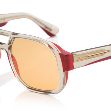 The Model 13 introduces a subtle shift in character, pairing a cool grey frame with confident red accents for a look that feels modern, expressive, and quietly bold. Crafted from Jinliang acetate, the silhouette is clean and structured, designed to sit comfortably while making a statement without trying too hard. Gold-toned hinges bring a refined contrast and a touch of warmth, while the deep laser–filled silver tip décor adds a considered finishing detail. Nylon Category 3 lenses offer crisp clarity and dependable sun protection, making this pair as functional as it is distinctive. With a slightly wider fit at 56-18-148, Model 13 is built for presence — equally at home in the city, on the road, or wherever the day unfolds.