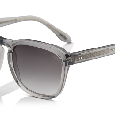The Model 19 in Trans Grey offers a lighter, more contemporary take on a bold, confident silhouette. Crafted from translucent Jinliang acetate, the frame reveals its internal structure through soft grey tones, creating depth and visual interest without excess. The larger lens shape and wider proportions give the frame presence, while the transparency keeps it refined and balanced. Integrated acetate nose pads provide a comfortable, stable fit for all-day wear, complemented by silver metal hinges that add durability and smooth movement over time. At the temple tips, deep laser-filled silver detailing introduces a subtle signature — precise, restrained, and intentionally understated. Finished with CR-39 Category 3 lenses, Model 19 delivers clear vision and dependable sun protection in bright conditions. Modern yet versatile, Trans Grey is designed for those who appreciate strong form softened by thoughtful material choice — expressive without being loud, and built to be worn effortlessly, day after day.