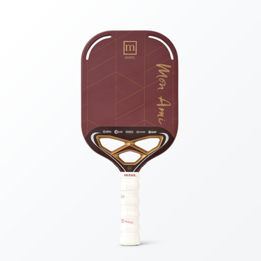 Enhancing this seamless control, Mon Ami features patented SILIGRIP RINGZ™, an ingenious addition that exponentially dampens vibrations while amplifying grip and handfeel to new heights. The textured surface boasts the patented Mint 3D Watermark Spin System for unrivaled spin potential, and a touch of extra weight brings the paddle squarely into a mid/heavyweight class, infusing every swing with powerful momentum. Yet, with all this might, the Mon Ami remains as gentle and reliable as a true best friend, blending raw strength with the grace essential for the modern game. Hit the courts with a new best friend..